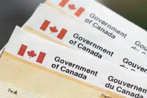 Ottawa, Ontario, Canada - October 15, 2023: Government of Canada sign outside the office building in Ottawa, Ontario, Canada.